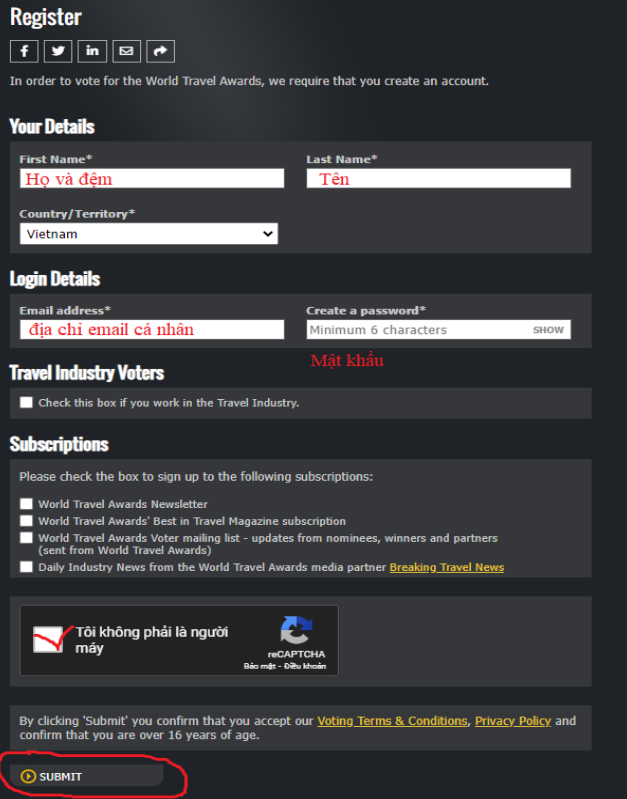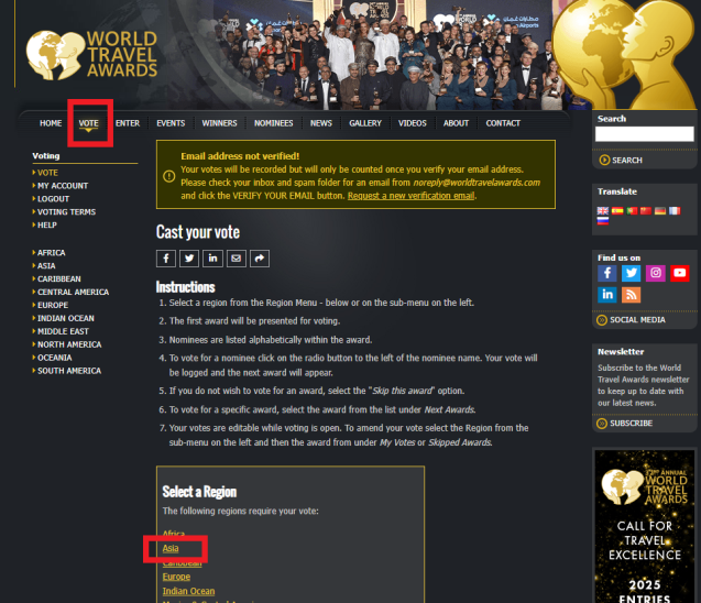 - Bước 1: Truy cập đường link https://www.worldtravelawards.com/vote