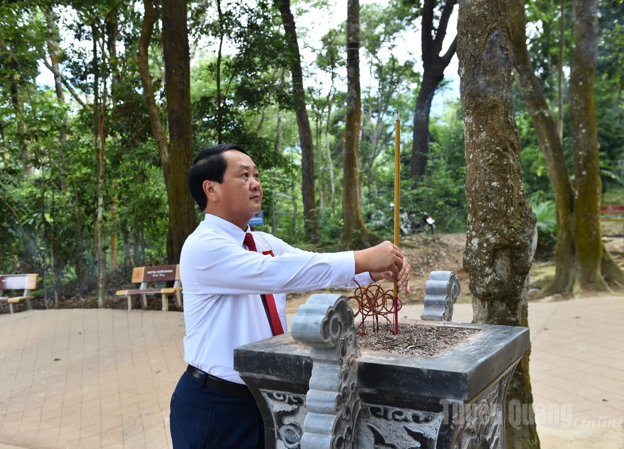 Đoàn đại biểu tỉnh đã tới đặt hoa, dâng hương tại lán Nà Nưa, Đình Tân Trào, Tượng đài Bác Hồ ở Tân Trào, Khu tưởng niệm Chủ tịch Hồ Chí Minh và các vị tiền bối cách mạng.