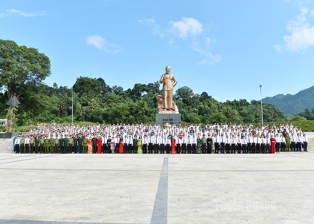 Đoàn đại biểu dự Đại hội Đảng bộ tỉnh lần thứ I trước Tượng đài Bác Hồ ở Tân Trào. Ảnh: Thanh Phúc