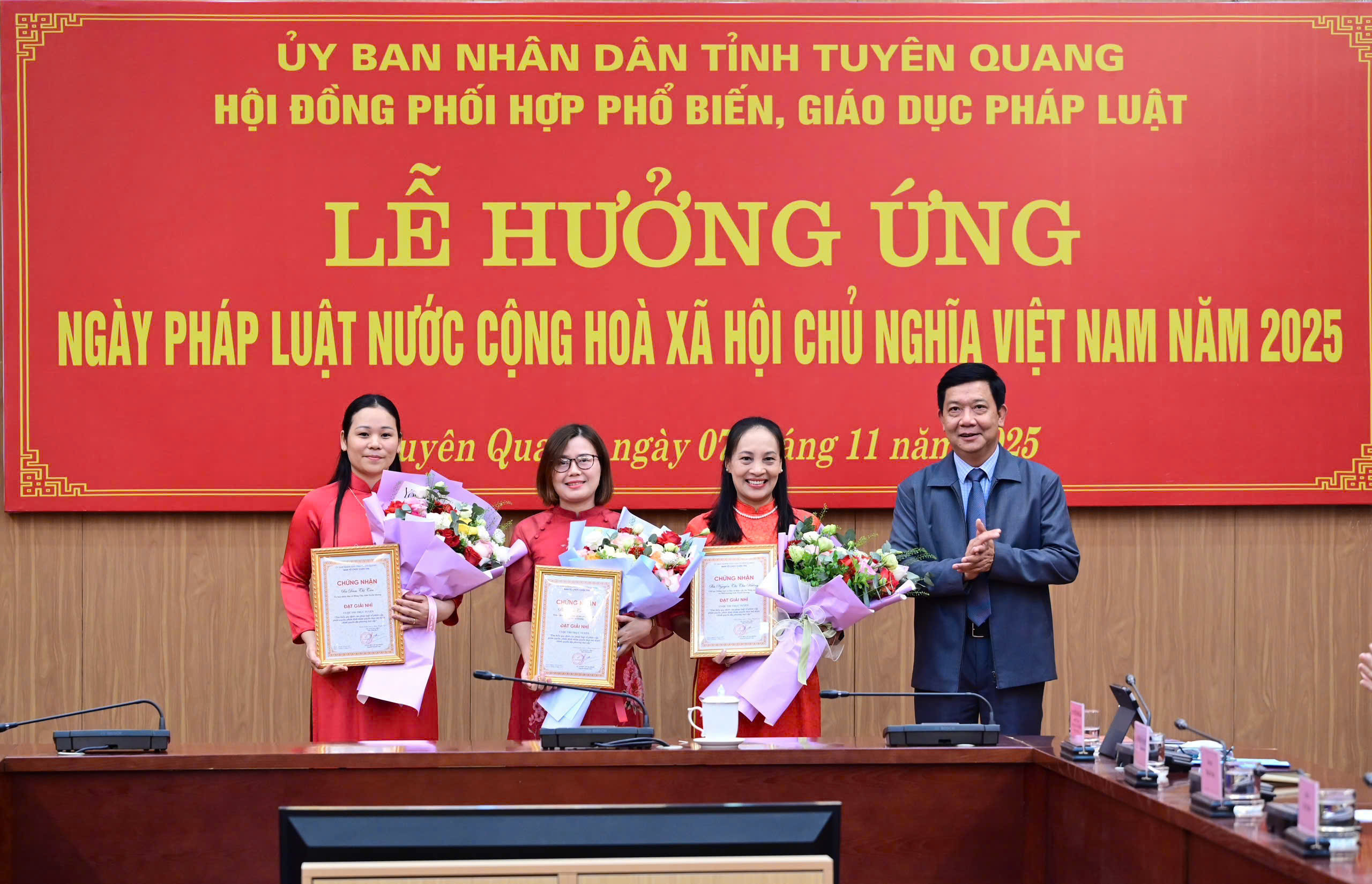 Nhân dịp này, có 28 tập thể, 46 cá nhân được nhận Bằng khen của Chủ tịch UBND tỉnh vì đã có thành tích xuất sắc trong công tác xây dựng pháp luật, hoàn thiện thể chế giai đoạn 2021-2025; trao giải thưởng Cuộc thi trực tuyến “Tìm hiểu quy định của pháp luật về phân cấp, phân quyền, phân định thẩm quyền theo mô hình chính quyền địa phương hai cấp” cho 30 cá nhân.