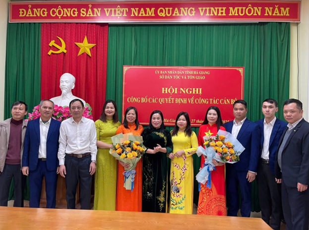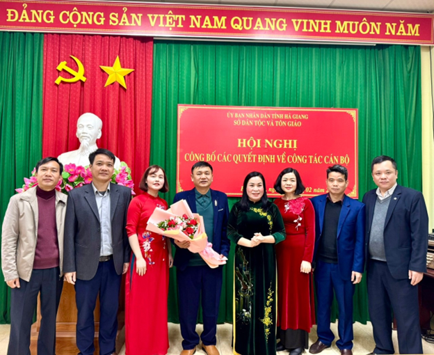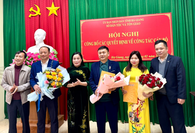 Tại hội nghị, Đồng chí Trịnh Thị Thúy Hằng, Phó Chánh Văn phòng Sở đã Thông qua Quyết định số 17/QĐ-UBND ngày 25 tháng 02 năm 2025 của Ủy ban nhân dân tỉnh Quy định cụ thể chức năng, nhiệm vụ, quyền hạn và cơ cấu tổ chức của Sở Dân tộc và Tôn giáo tỉnh Hà Giang. Công bố các Quyết định tiếp nhận, điều động, bổ nhiệm lãnh đạo các phòng chuyên môn thuộc Sở: Bà Sầm Thị Dương Trưởng phòng Nghiệp vụ I giữ chức vụ Chánh Văn Phòng; Ông Đinh Ngọc Hải,Trưởng phòng Nghiệp vụ II giữ chức vụ Trưởng phòng Kế hoạch - Tổng hợp; Ông Bùi Vàng Hải Thiệp Phó Trưởng phòng Nghiệp vụ I giữ chức vụ Phó Trưởng Phòng, phụ trách Phòng Chính sách; Ông Nông Phúc Hậu Trưởng phòng Quản lý Tín ngưỡng, Tôn giáo của Sở Nội vụ giữ chức vụ Trưởng Phòng Quản lý Tín ngưỡng, Tôn giáo Thuộc Sở Ban Tộc và Tôn giáo tỉnh Hà Giang và các Quyết định tiếp nhận, điều động và phân công tác đối với các đồng chí là cán bộ, công chức, người lao động thuộc Sở Dân tộc và Tôn giáo.