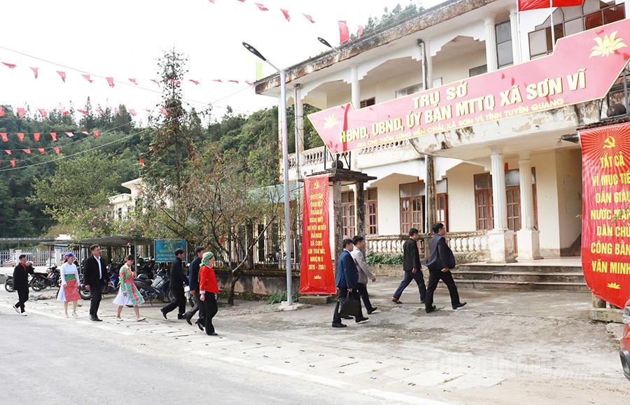 Cán bộ, đảng viên xã Sơn Vĩ hân hoan, tin tưởng vào Đại hội. Ảnh: Trần Kế
