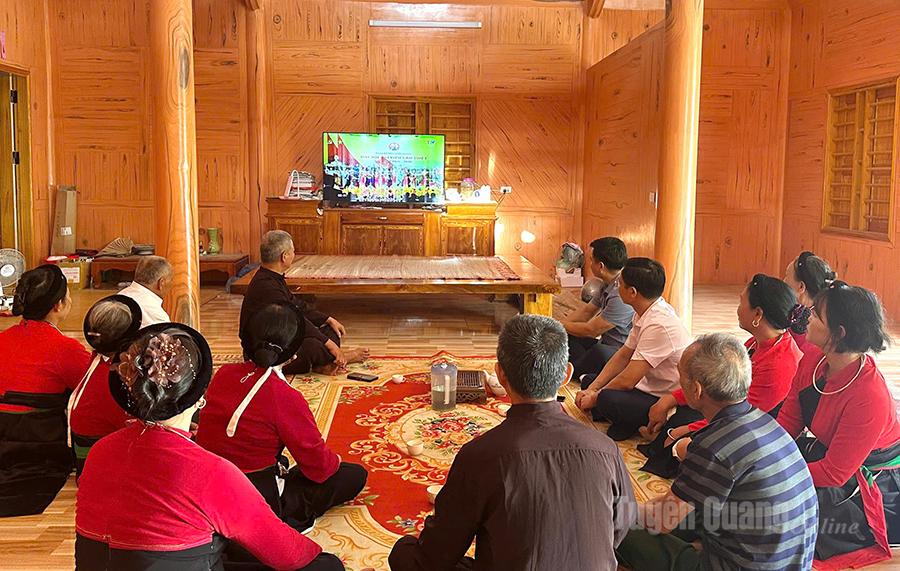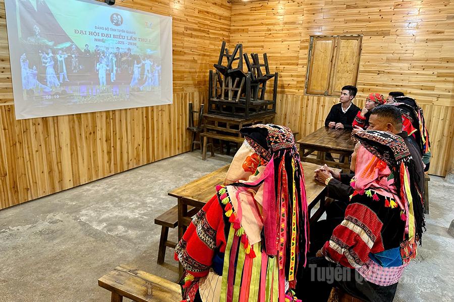Người dân thôn Tân Lập, xã Tân Trào theo dõi Đại hội đại biểu Đảng bộ tỉnh lần thứ I. Ảnh: Lan Phương