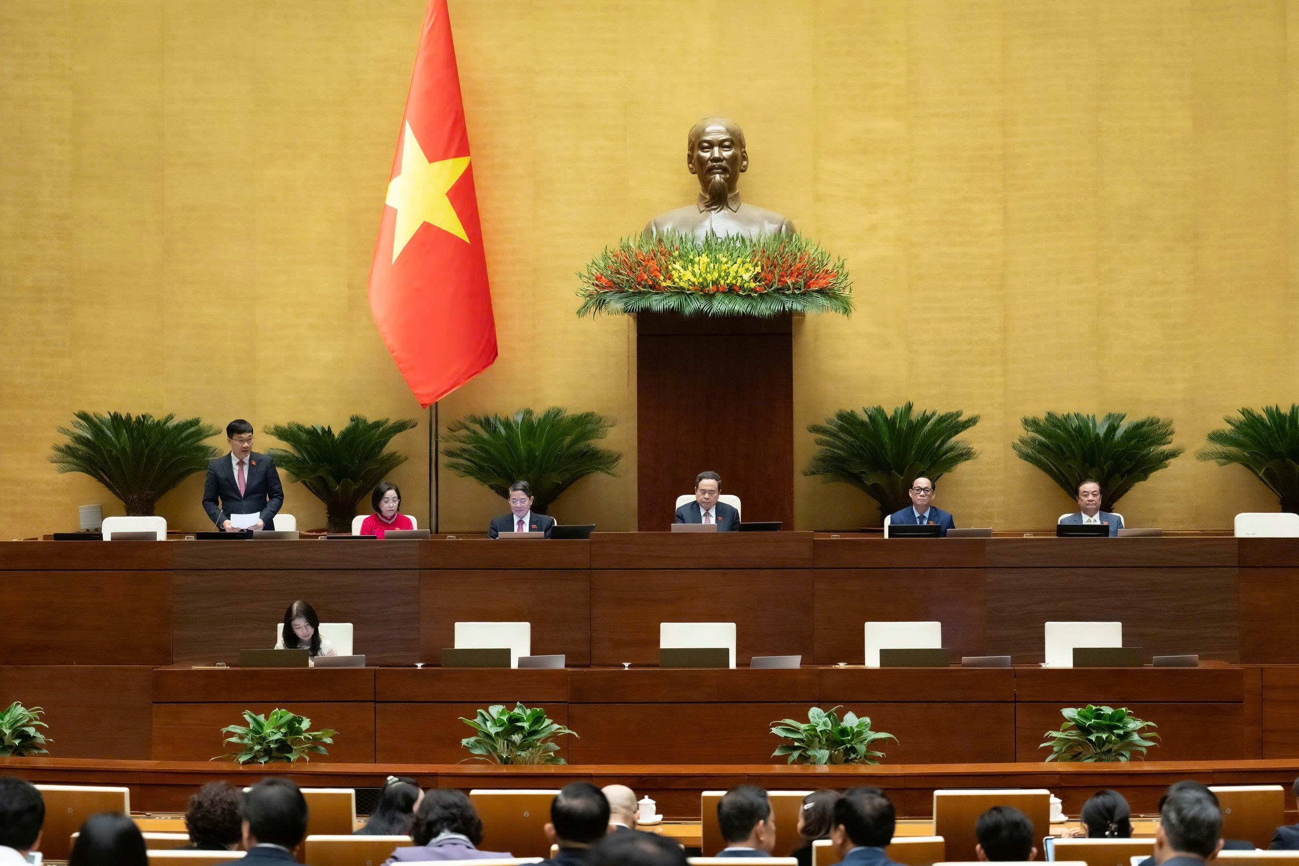 Trước khi tiến hành biểu quyết, Quốc hội nghe Bộ trưởng Bộ Nông nghiệp và Môi trường Trần Đức Thắng, thừa ủy quyền của Thủ tướng Chính phủ, trình bày Báo cáo tóm tắt tiếp thu, giải trình ý kiến đại biểu Quốc hội, chỉnh lý dự thảo Nghị quyết phê duyệt chủ trương đầu tư Chương trình mục tiêu quốc gia về nông thôn mới, giảm nghèo bền vững và phát triển kinh tế - xã hội vùng đồng bào dân tộc thiểu số và miền núi giai đoạn 2026 - 2035.