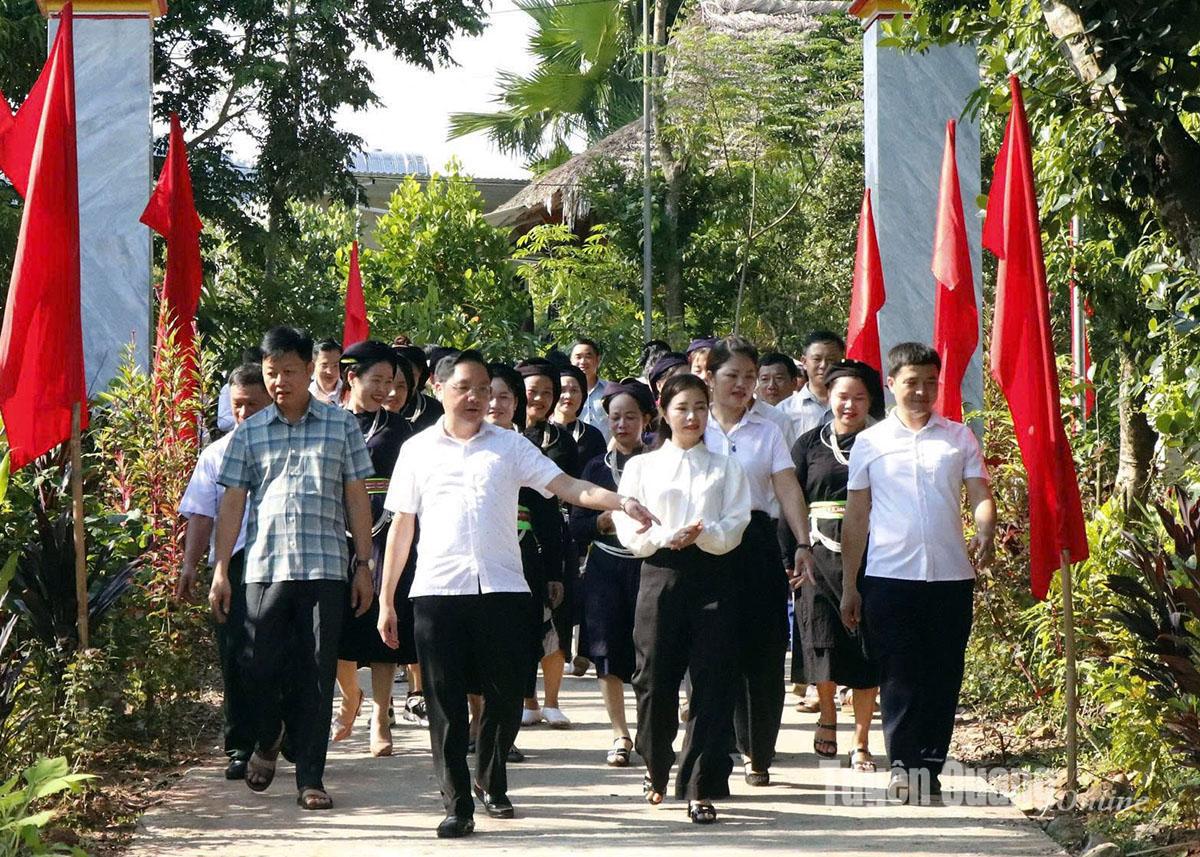 Niềm vui của cán bộ và Nhân dân xã Bằng Lang khi đưa vào sử dụng công trình Cổng chào thôn và đường bê tông thôn Hạ Thành, đây là công trình chào mừng Đại hội đại biểu Đảng bộ tỉnh lần thứ I.
