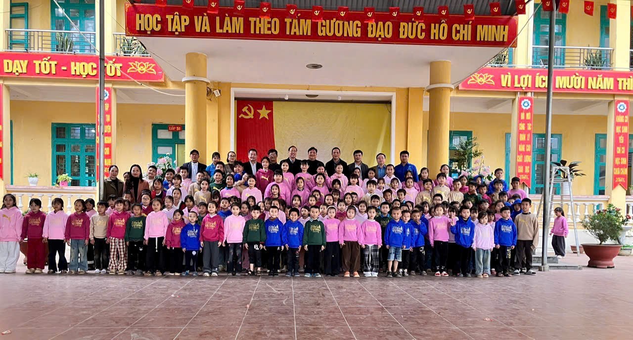 Đoàn đến thăm và trao tặng 100 áo rét cho các em học sinh Trường Tiểu học Yên Lâm I, xã Yên Phú